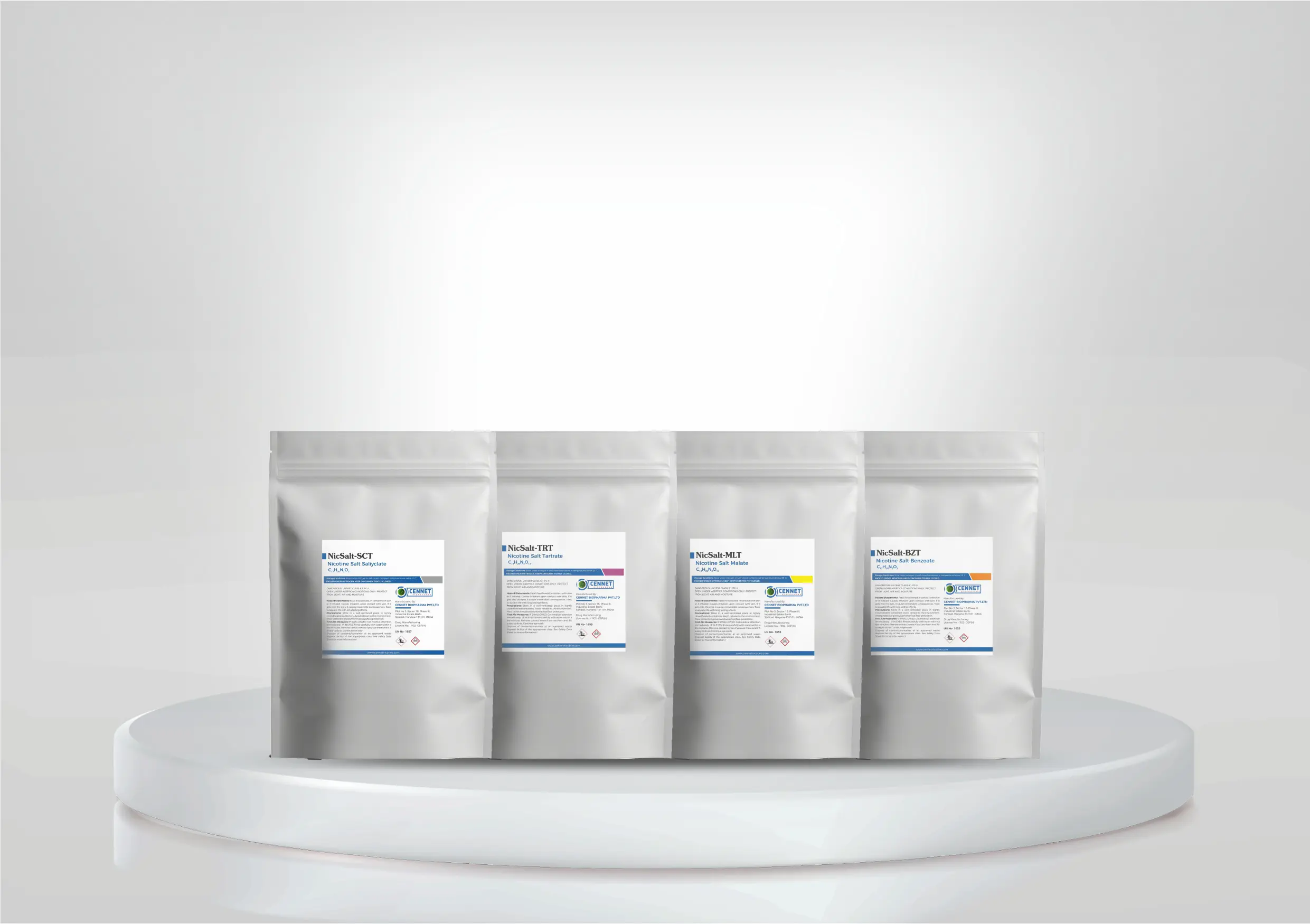 Nicotine salts are next generation E-liquid made using combination of Pure Nicotine with Acids. Higher absorption of Nicotine and Delicate throat hit are making Nicotine salts a popular option in the market. All our Nicotine salts are made using Pharmaceutical Grade Ingredients. We offer a wide range of Nicotine Salts including some of the most common options like