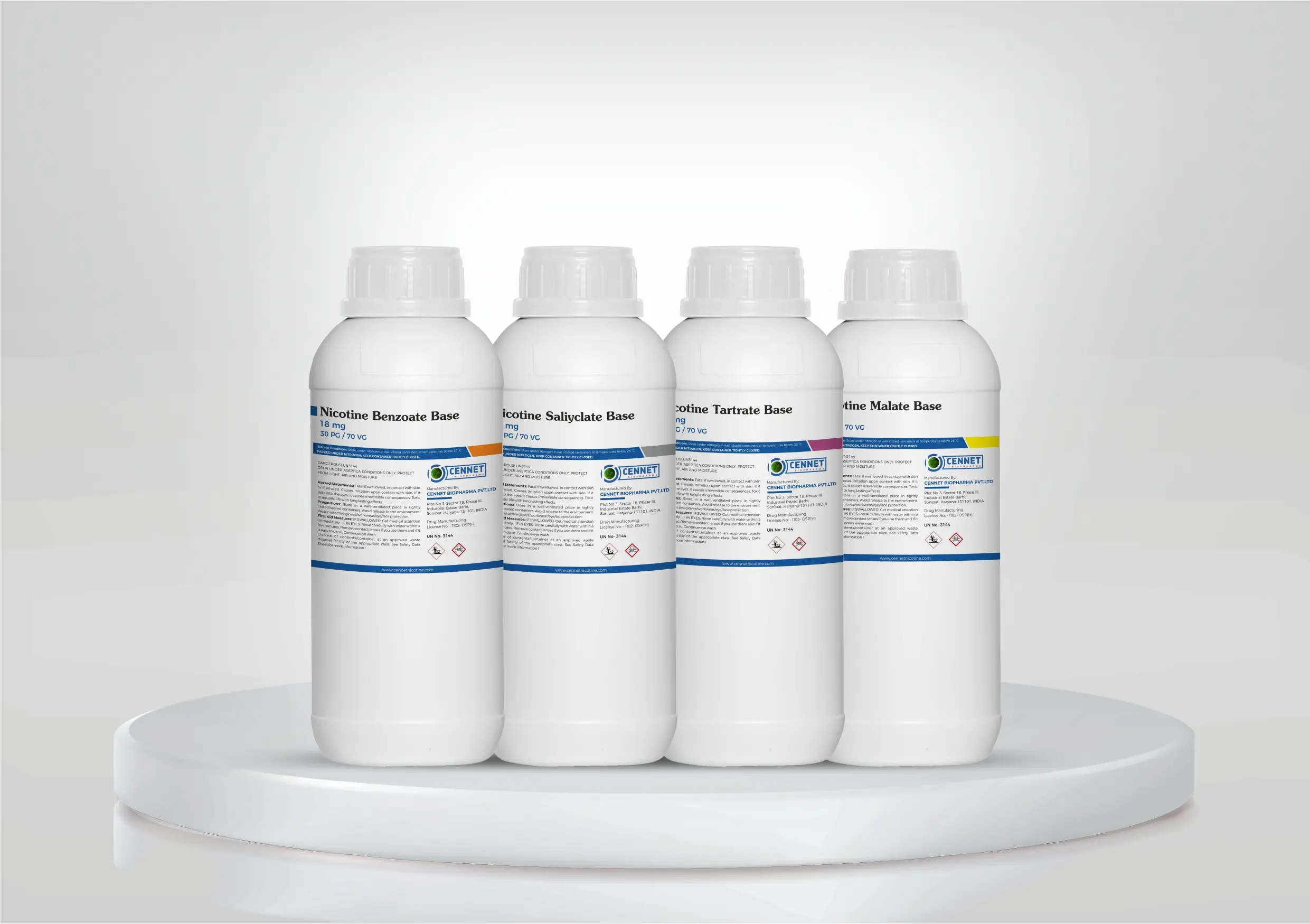 Our Nicotine dilutions are crafted as per needs and requirment of customers. The dilution is made using our In-house Nicotine USP/Ph Eur and Nicotine Salts which are either diluted in vegetable glycerine and propylene glycol.
